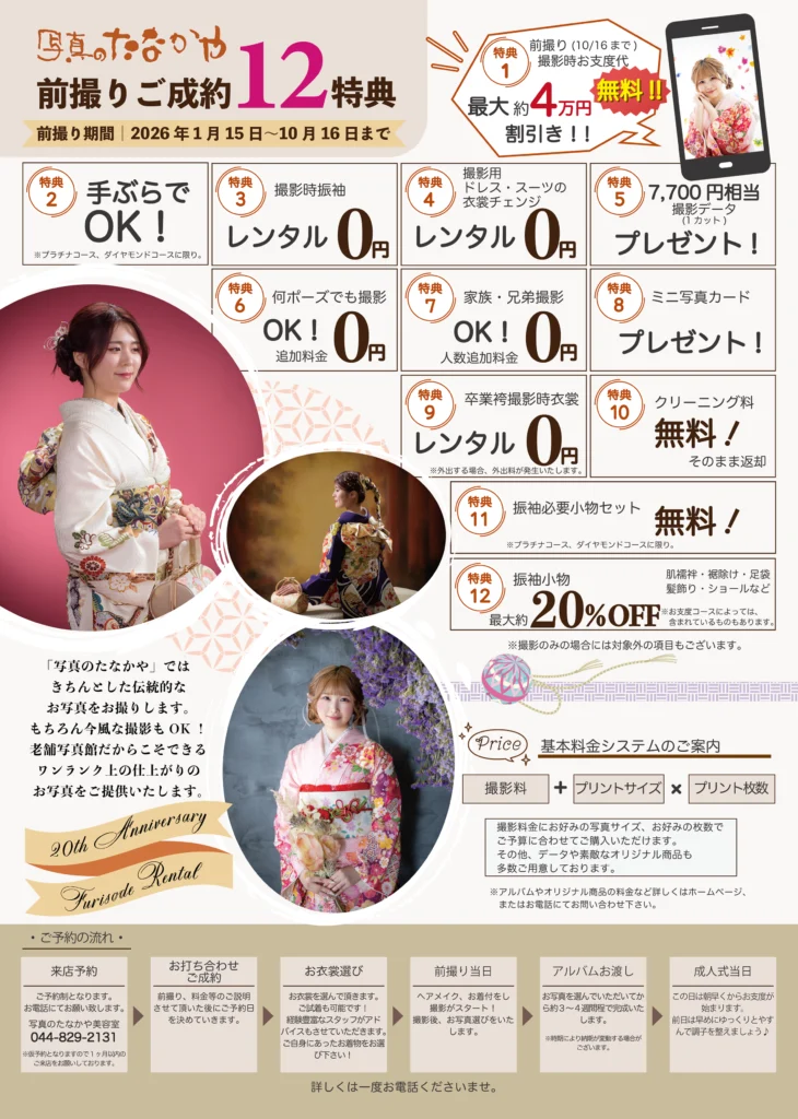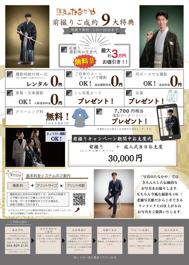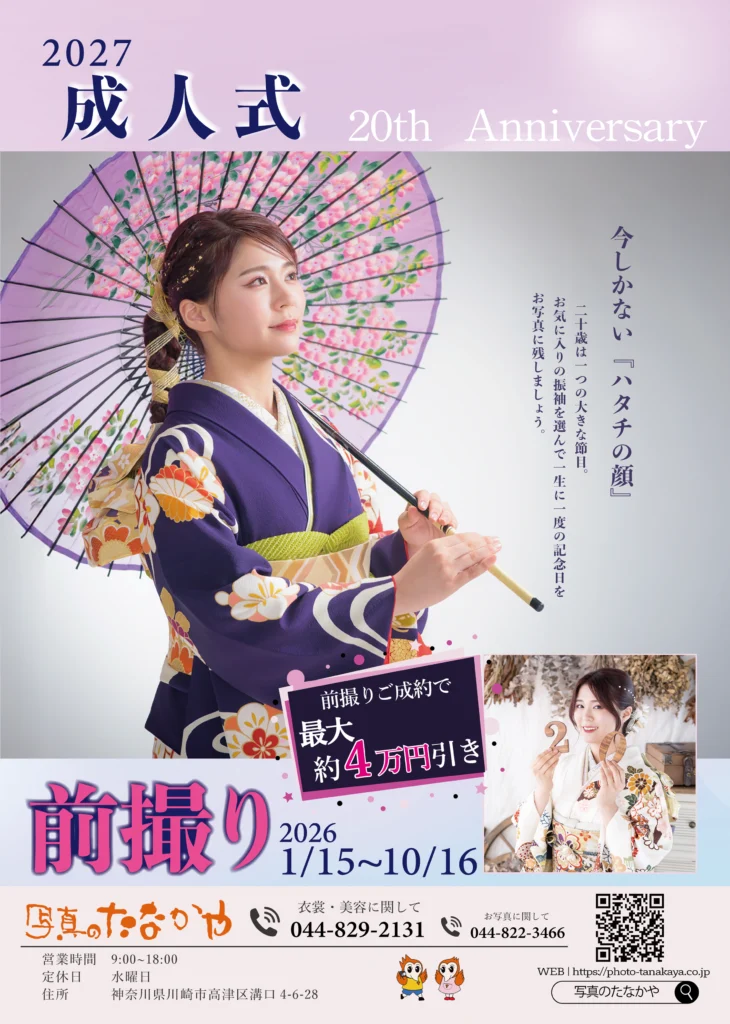 写真のたなかやでは1月15日(木)より、2027年の成人様の前撮りキャンペーンを開始いたします。