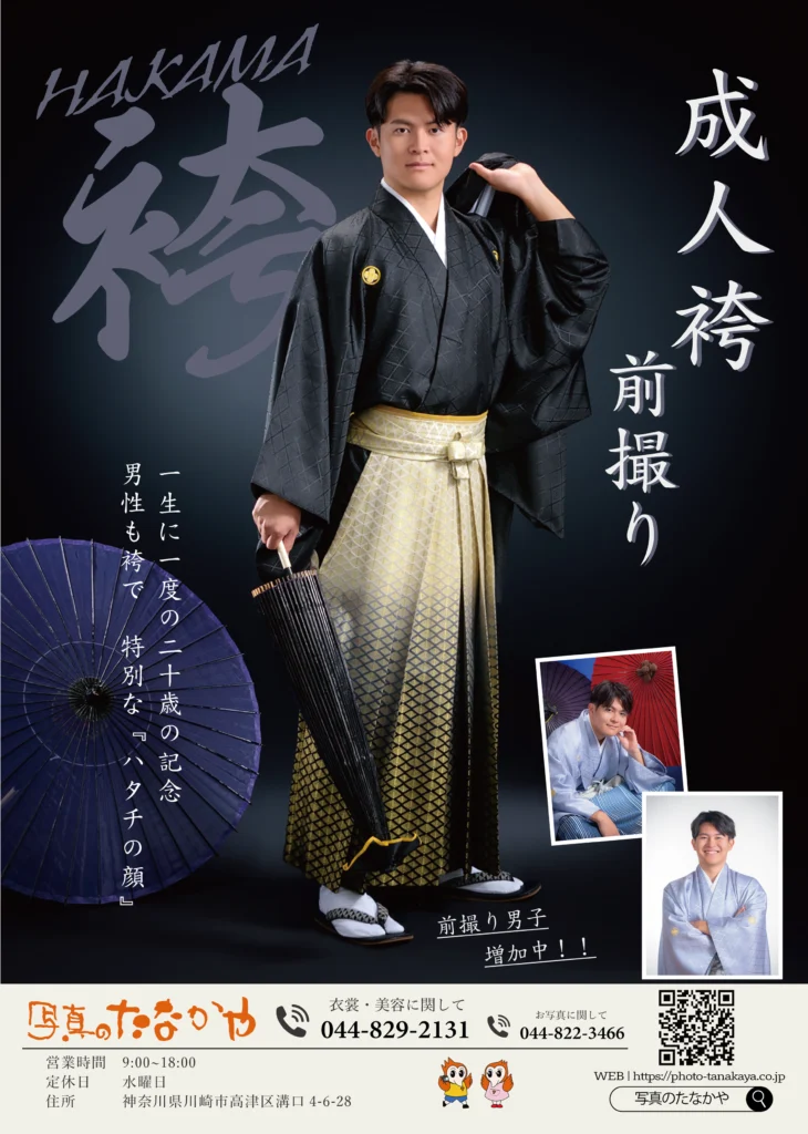 式にはスーツで参加予定の方も、ぜひ御写真だけでもキリッと凛々しい『二十歳の顔』を残してみませんか?